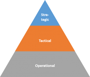A typical construct has three levels – Operational, Tactical, and Strategic:
